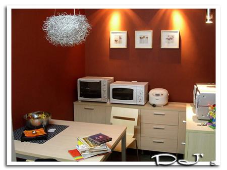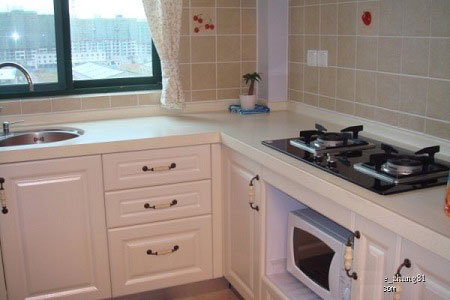 廚房的設(shè)計(jì)相當(dāng)與眾不同~。不過走路的時(shí)候不會(huì)碰到頭或肩膀吧,微波爐會(huì)不會(huì)覺得自己長(zhǎng)了對(duì)小翅膀。