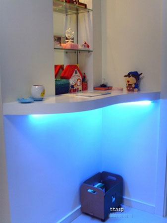 這個(gè)玄關(guān),是很多網(wǎng)友想要的,可以做鞋柜用,下面又做抬高,裝射燈,很美觀,上面也可以放置裝修品什么的,估計(jì)自己家的木匠也可以制作吧。
