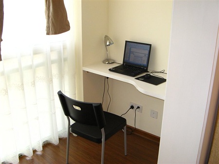 超簡(jiǎn)潔的電腦臺(tái),應(yīng)該是泥瓦工在硬裝的時(shí)候砌的。相當(dāng)實(shí)用,在小屋里一點(diǎn)不覺得煩瑣。