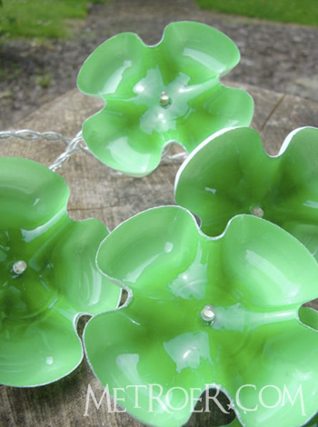 用瓶底來做燈座自然不是很稀奇,不過把瓶底涂成綠色,呈現(xiàn)出荷葉的樣子,這個創(chuàng)意又稍微有點意思了,如果家里有一個大魚缸,讓燈浮在水面上,那感覺一定會很好。
