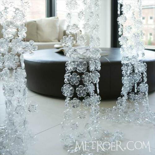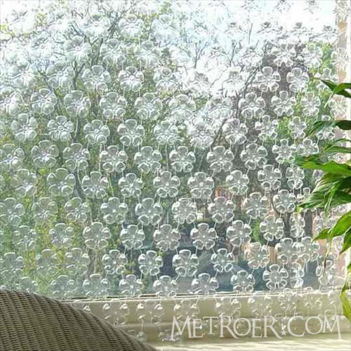 這個似乎難了點,因為要積攢非常多的瓶底兒,還要有很好的耐性,不過,如果是冬天的時候,用這樣一款簾,仿佛窗戶上貼滿了雪花一樣,的確是別有一番風(fēng)味。