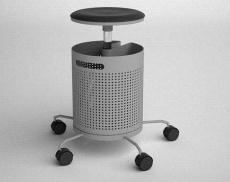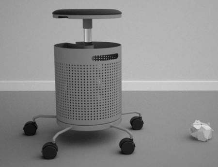 紙簍和椅子是辦公室里不可或缺的物品。這款轉(zhuǎn)椅將字紙簍安置在了轉(zhuǎn)椅椅墊下方,要想扔垃圾,您還得站起來。雖說扔垃圾的步驟變得繁瑣了,但它卻讓您無形地進(jìn)行了更多運動,何樂不為呢?