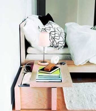 為你的床頭配置一個具有良好收納功能的床頭柜,像這個滑蓋的床頭柜就很棒,可以把有礙觀瞻的雜物收得一干二凈,而且隨用隨取,十分方便。