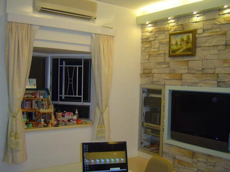 無處不在的收納空間,一面輕體墻改造的電視背景墻將視聽功能全部囊括其中。