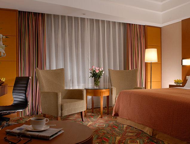 酒店設(shè)計(jì)時(shí)尚,以暖色調(diào)為主的裝飾平添溫馨舒適的意境。酒店共有375間豪華典雅的客房及套房,另設(shè)有11間寬敞的服務(wù)式公寓。每間客房面積均超過38平方米。