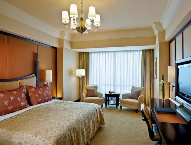 酒店設有409間典雅大方的客房,其中包括73間豪華閣客房和34間套房,分別可欣賞江景和山景,房間面積在42平方米以上。