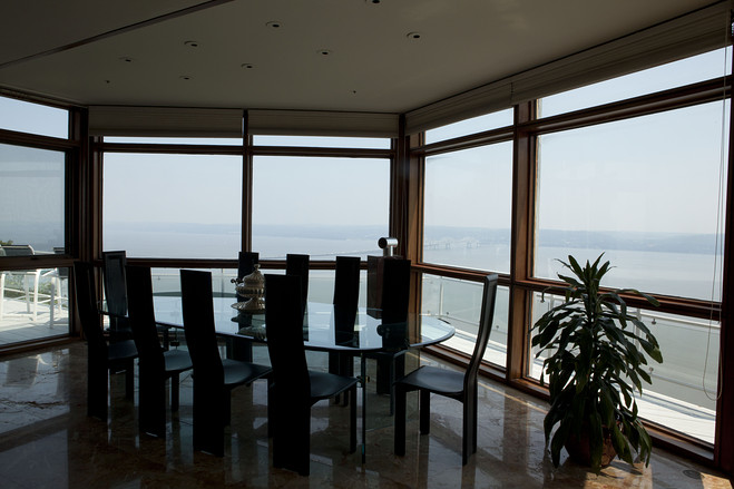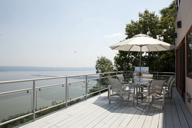 這座面積460多平方米的三居住宅位于紐約州上格蘭德維尤,帶觀景臺(tái)、大天窗和圖書室,坐享哈德遜河美景,要價(jià)折合人民幣約1,280萬(wàn)元。這座面積460多平方米的住宅共有10個(gè)房間。起居室的天花板很高,帶有兩排窗戶和一個(gè)由灰泥和花崗巖砌成的壁爐。起居室的頂上有三個(gè)大天窗。這座住宅包括主臥在內(nèi)共有三間臥室、三個(gè)全衛(wèi)、一個(gè)半衛(wèi)。廚房中間有個(gè)花崗巖臺(tái)面的烹飪島,另有兩臺(tái)洗碗機(jī)和兩個(gè)水槽。圖書室的墻壁和天花板都鋪設(shè)了桃花心木鑲板。下面一層的影音室中有一個(gè)大理石壁爐。