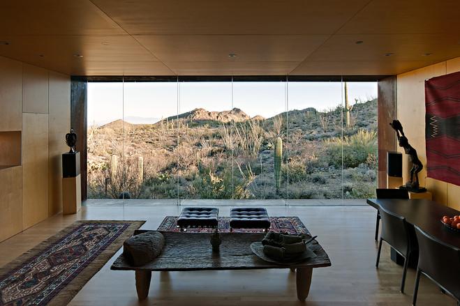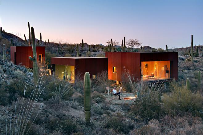 三座方形建筑分別面朝不同的方向:東、南和西。最大的一座建筑面積約70平方米,里面有客廳(如圖)、廚房和餐廳。塞西爾先生說,盡管每座建筑都采用了玻璃墻,但隱私絕對不是問題。“你住在一個峽谷里,在你停車的地方你都看不見這座房子。它的視覺足跡幾乎為零。”這處房產(chǎn)還包括一個帶儲藏室的汽車棚。塞西爾先生說,開車約15分鐘便可到達“文明的邊緣”,再開10分鐘便回歸圖森市的“正常都市生活”。[page]