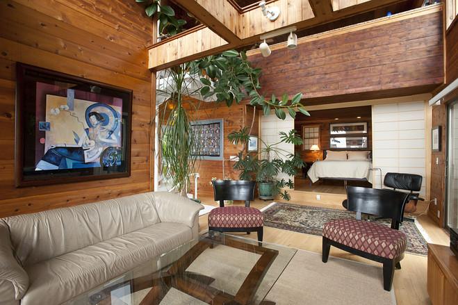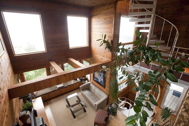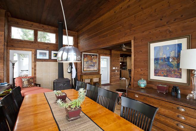 這處住宅面積約180平方米。許多房間內(nèi)都以雪松木鑲板裝飾。圖為餐廳。[page]