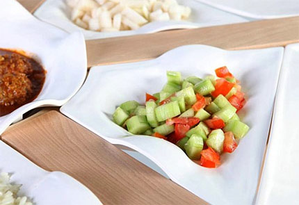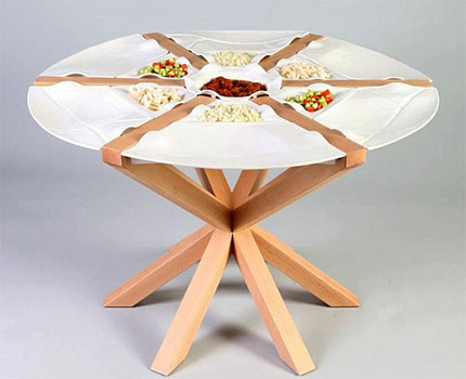 這款桌子來自設(shè)計師Elad Kashi的設(shè)計,桌面配有一些特別設(shè)計的可移動陶瓷盤子,別致的造型與簡約的桌子搭配起來時尚有特色。