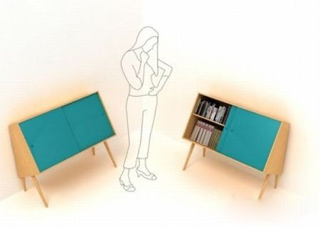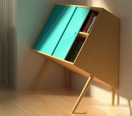 這款靠著墻壁抬頭向上看的柜子除了“姿勢”特別并沒有其他的獨特之處。但正是這一簡單的改變,使得這款柜子仿佛被注入了人類的性格。懂得“俯視”使用者的同時,也讓使用者拿取其中的東西方便了許多