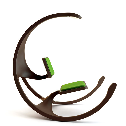壓力過(guò)大的都市生活,讓你疲憊不堪,這把椅子有如母親的子宮包圍著你,溫暖舒適,它的雛形來(lái)自于搖籃,椅子底部的圓形軌道可以讓椅子搖晃著助你迅速進(jìn)入夢(mèng)鄉(xiāng)。為了保證你最大程度的舒適感,椅背延伸而出,輕柔頂在你的后背上。為了便于你休憩時(shí)閱讀的習(xí)慣,椅子頂部配有頂燈,一切如此愜意,那些煩惱早就被拋到九霄云外了。