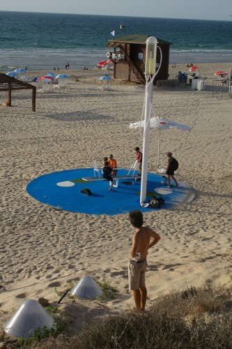 Tamaguchi公園實際上回應(yīng)的是來自二十世紀九十年代中期的一種玩具,這是第一款提到如何教育孩子們?nèi)リP(guān)心和承擔責任的玩具,它通過一個年輕主人養(yǎng)育的人工寵物的直接反饋來起到教育孩子的作用。設(shè)計師想要在體貼的使用者和沙灘斜坡景觀之間創(chuàng)造出一種類似的寵物與主人之間的關(guān)系,設(shè)計包括兩個主要的物理元素:造水裝置;還有一個公園和一個由志愿者服務(wù)的為當?shù)貙W校孩子準備的教育項目。