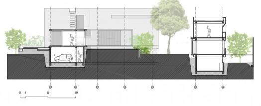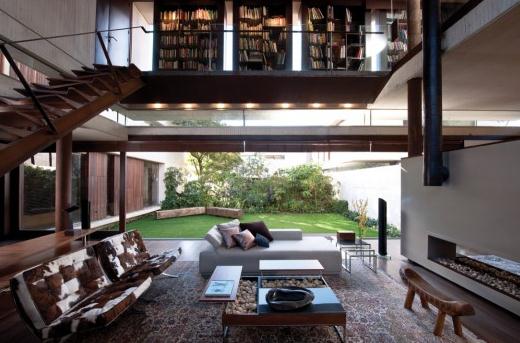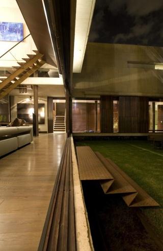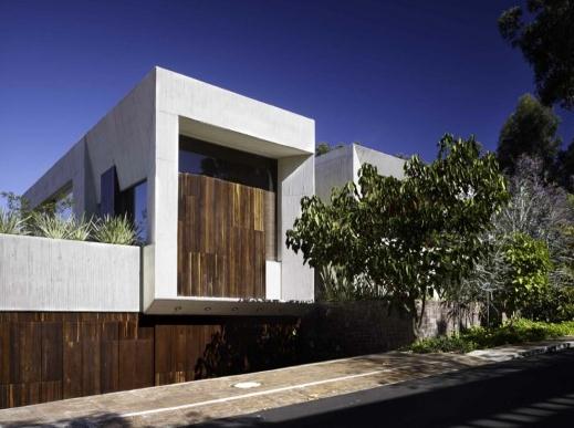 這個(gè)項(xiàng)目包含兩個(gè)相互連接的位于斜坡地勢(shì)上的,并在一個(gè)季節(jié)性分水線之上的雙胞胎住宅。 建筑師在這個(gè)項(xiàng)目上主要探討的是兩種經(jīng)典的加州建筑形式之間的交叉,一個(gè)是院落住宅,一個(gè)是山邊住宅??刂浦Y(jié)構(gòu)體量的兩層外表面的重疊將這種交叉復(fù)雜化,事務(wù)所設(shè)計(jì)的開端即是將這兩層表皮交叉,然后將這一個(gè)體量插入兩個(gè)院落之間,使山邊地形變身山邊和院落的綜合。