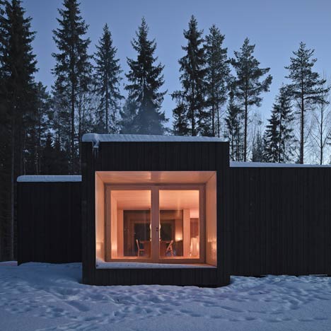 住宅所在場(chǎng)地位于一個(gè)馬蹄形的島嶼上,朝北朝東。別墅十字形的構(gòu)成使空間向著四個(gè)不同的方向延展??臻g開闊精致。室外是全黑,而室內(nèi)則是與之形成對(duì)比的白色。黑色的外皮使建筑消失在周圍的景觀中。住宅呈現(xiàn)出平平的屋頂,它構(gòu)成對(duì)現(xiàn)代建筑固有元素溫柔的。住宅有著很好的絕緣系統(tǒng),它利用木材加熱,是一個(gè)碳中和結(jié)構(gòu)。住宅內(nèi)部沒有自來水,電力是通過太陽能提供的。