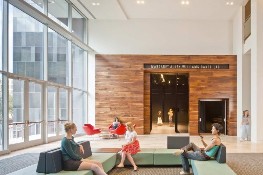 休斯敦芭蕾舞蹈中心展示出休斯敦對表演藝術(shù)的專注,它是舞蹈行業(yè)一個活生生的廣告牌。Geler的設(shè)計靈感來源于古典時期舞臺的構(gòu)造,它通過巨大的窗戶展示教學和排練,而窗戶對面是雙高體量的排練工作室。項目是休斯敦芭蕾的總部,并涵蓋它的學院部分。這個六層的建筑包含九個舞蹈工作室,一個舞蹈實驗室,還有藝術(shù)、管理和支持設(shè)施。它也是美國最大的舞蹈教育機構(gòu)。