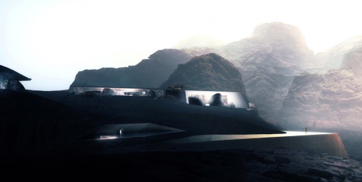 這是圍繞約旦瓦迪拉姆新奢華度假勝地的一次國(guó)際性設(shè)計(jì)比賽,Oenheim事務(wù)所的獲勝作品瓦迪度假村呈現(xiàn)的是一個(gè)生態(tài)敏感性方案。它包括47個(gè)在沙漠上的房間,它們營(yíng)造出未來(lái)感和原始感。設(shè)計(jì)試圖最大限度地發(fā)掘沙漠沙子與沙漠石頭相交融的神秘峽谷,來(lái)理解社區(qū)與周?chē)匀画h(huán)境之間的關(guān)系。