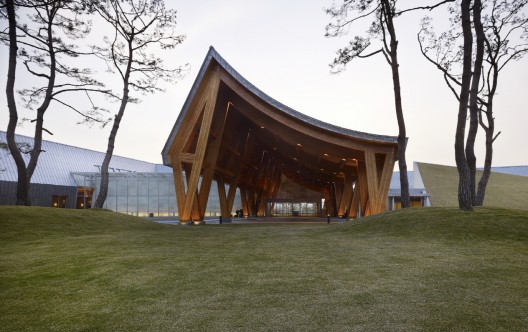 這是一個(gè)位于韓國順天的高爾夫度假村,周圍風(fēng)景美麗,還有歷史悠久的古建筑相伴。設(shè)計(jì)旨在最大限度地利用當(dāng)?shù)氐奶匦?,?chuàng)造一個(gè)能夠反映客戶意愿和傳統(tǒng)韓國建筑風(fēng)格的結(jié)構(gòu)。設(shè)計(jì)師的目的是要重新理解傳統(tǒng)韓國木質(zhì)建筑元素,將其運(yùn)用到度假村的建筑結(jié)構(gòu)當(dāng)中,表達(dá)傳統(tǒng)的韓式建筑美感。