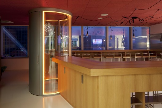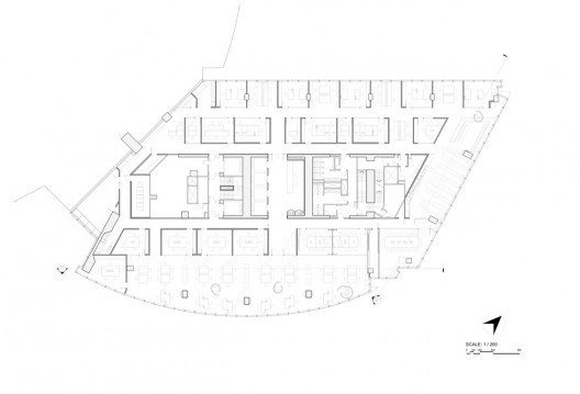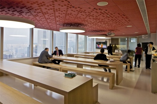 這個(gè)由OMA設(shè)計(jì)的麥肯錫公司香港辦公室滿(mǎn)足了客戶(hù)對(duì)于更為私密空間的需求,并提供了合作和交流的極大可能。公司對(duì)于事務(wù)所提出了下面的問(wèn)題:如何重新定義他們的辦公空間,以更加創(chuàng)新,并提升公司的形象。新設(shè)計(jì)的靈感來(lái)源于條形碼上的黑色條帶。不同的功能空間被設(shè)置成一套水平的帶狀結(jié)構(gòu),它們橫跨辦公空間。