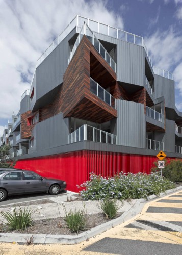 這個(gè)項(xiàng)目取材于經(jīng)典的設(shè)計(jì)理念,不是現(xiàn)代主義風(fēng)格,但是確實(shí)一個(gè)好的設(shè)計(jì)。設(shè)計(jì)師將景觀街道、車道與住宅場(chǎng)地融合,以在住宅之間創(chuàng)造出空間分隔,為每個(gè)住宅空間提供吸收自然光和自然通風(fēng)的可能。另外這些錯(cuò)開的空間使空間能有自然十字通風(fēng),這樣就不需要空調(diào)了。設(shè)計(jì)呈現(xiàn)出錯(cuò)落有致的盒子結(jié)構(gòu),獨(dú)特生動(dòng)。低排放量的照明和太陽能板進(jìn)一步減少了住宅的能源消耗。設(shè)計(jì)還融入了一個(gè)40000升的地下雨水收集容器。