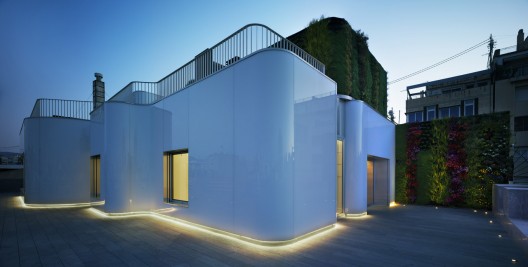 這是城市里的一個(gè)原有閣樓翻修項(xiàng)目,客戶的要求是設(shè)計(jì)一個(gè)能展示自己收藏的畫作的起居空間,另外設(shè)計(jì)還想喚醒人們對(duì)郊區(qū)住宅的美好回憶,并將這種感覺(jué)帶入城市中。翻新是在一個(gè)原有的閣樓上進(jìn)行的,作為對(duì)之前布局的一種進(jìn)化,設(shè)計(jì)覆蓋和打斷了已有的外墻,呈現(xiàn)出一系列可居住的泡泡。這些泡泡之間的空間是服務(wù)區(qū)和流通區(qū),每個(gè)泡泡都有不同的功能,如餐廳,起居室,主臥,兒童臥室等。