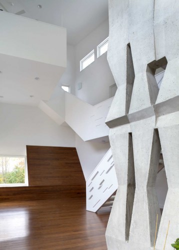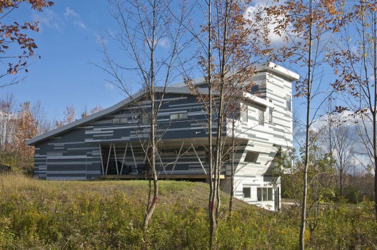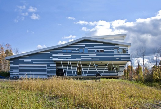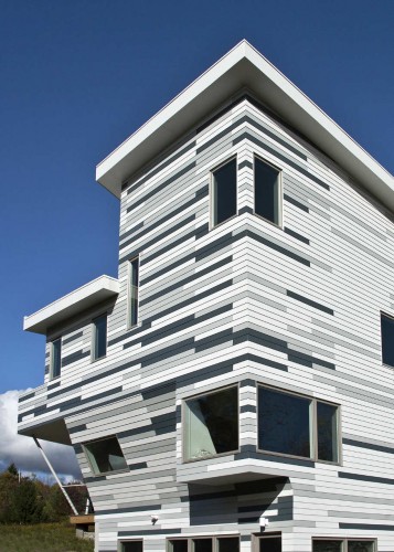 HSU是一個(gè)小巧的住宅,設(shè)計(jì)采用被動(dòng)節(jié)能原則,致力于為一個(gè)不斷壯大的家庭創(chuàng)造廉價(jià),環(huán)保,節(jié)能的住宅環(huán)境。住宅挺立在紐約伊薩卡島的一個(gè)山上,分叉的屋頂將住宅覆蓋,整個(gè)空間圍繞著一個(gè)三層高的起居室排布,這個(gè)起居室既是一個(gè)空間軸心也是自然通風(fēng)的良好辦法。