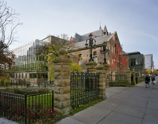 新建成的TELUS表演學習中心是一個整體規(guī)劃項目的最后一部,這個整體規(guī)劃項目是為加拿大最優(yōu)秀最頂尖的音樂和藝術(shù)教育機構(gòu),即皇家音樂學院設(shè)計的。設(shè)計在歷史和新建筑之間的空間內(nèi)創(chuàng)造了一個由自然光照亮的人行空間,它連接布盧爾街通向演奏廳和大廳的入口。玻璃和鋼鐵新加結(jié)構(gòu)與古老的歷史建筑表皮形成明顯的反差。