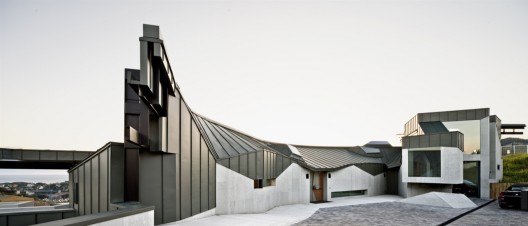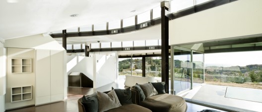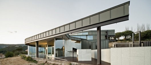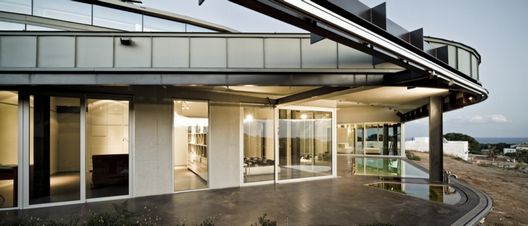 這個(gè)住宅是沿著場地的縱向軸線和場地的美好景色排布的,它朝著大海,有著絕佳的視野,住宅與場地的完美交融是這個(gè)項(xiàng)目最大的價(jià)值,它在場地內(nèi)折疊打開,又與之相互混合。設(shè)計(jì)開始于對(duì)場地地形的理解,通過重新勾勒線條,一些可能的空間慢慢出現(xiàn),從地下停車空間到工作室的漂浮平面。這些彎曲的線條從混凝土墻中升起,繼而又下滑,但是總是清晰總是可見,并能通過長長的覆蓋其上的金屬梁形成空間。