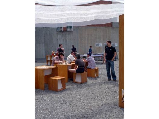這是由Interboro Partners在今年P(guān).S.1年輕建筑師項目中設(shè)計的獲獎項目,它是一個簡單但公共的大型裝置。這是一個以社區(qū)為基礎(chǔ)的設(shè)計,包含必須的項目,滿足社區(qū)的需求。最終這些裝置將被回收利用,其中包含的相關(guān)設(shè)施,如乒乓球桌,凳子和投光燈將被捐獻(xiàn)給長島社區(qū)內(nèi)的相關(guān)機(jī)構(gòu)。