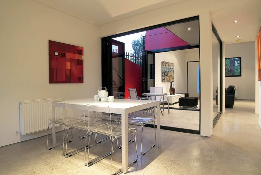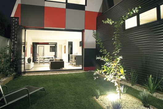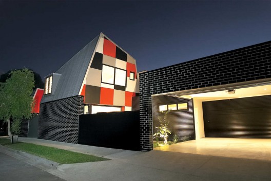 這個住宅是對郊區(qū)鄉(xiāng)村住宅和地區(qū)規(guī)劃法案的一種回應(yīng),它是努力在提供一種廉價的住宅形式,挑戰(zhàn)傳統(tǒng)的歐式郊區(qū)住宅形式。項目的目標(biāo)不是為了彰顯事務(wù)所對地區(qū)問題和建筑文化問題的獨立看法,而僅僅是想通過有效簡單的標(biāo)準(zhǔn)型建筑方法創(chuàng)造出不一樣的可能。因此設(shè)計采用了磚,涂漆的壓制板面,彩色的帶狀屋頂和覆蓋,石膏板等等。
