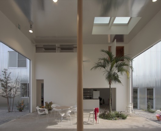 這個半咖啡半住宅的結構是由Ikimono事務所設計完成的,它完全環(huán)繞著室內室外之間的關系展開??蛻粢笏械募毠?jié)都要從與外界的聯(lián)系入手。強烈但是簡單的室外包含著兩個矩形的形式,它們互相垂直地立著。建筑的每個細節(jié)都表現(xiàn)出不同的功能形式,以滿足客戶的不同要求。兩個垂直結構的樓下都相對較為開闊,住宅空間較為狹窄,以滿足隱私需求。樓上的起居空間很明顯與其他空間不同,它有著更細膩的細節(jié),還有強烈的封閉感。