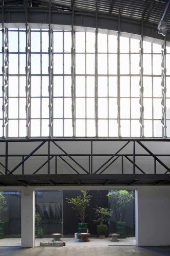 這個老倉房之前是一個停車場,它位于巴西圣保羅,周圍是一片工業(yè)區(qū)。這個空間內部有一個薄板木質拱形結構,它橫跨三十米。兩側的窗戶是原始的木材,它能幫助室內光線的擴散。展示空間是一個開闊靈活的空間,畫廊可以根據需要任意調整,自由墻的使用可以幫助增加空間的靈活度。倉房后面原是三個體量,它們被轉化為兩個帶有小花園的體量,另有視頻室,浴室和小會議室。