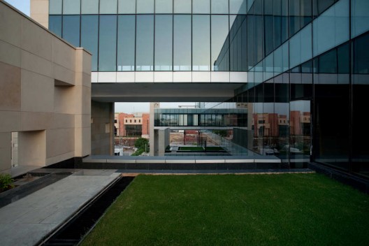 這是一個(gè)位于印度古爾岡的辦公綜合體,建筑與傳統(tǒng)的辦公形式不同,它包括互相交織的開闊公共空間以及封閉的辦公空間。設(shè)計(jì)將商業(yè)中心的實(shí)用性需求和環(huán)境方面的考慮相結(jié)合,包括兩種非正式的空間,它們分別位于公共層和私人辦公層。首層包括娛樂和非正式會(huì)議區(qū),同時(shí)這個(gè)會(huì)議區(qū)定義大樓的入口。被動(dòng)節(jié)能策略被應(yīng)用于建筑設(shè)計(jì)當(dāng)中,以創(chuàng)造出不需要空調(diào)的舒適空間。