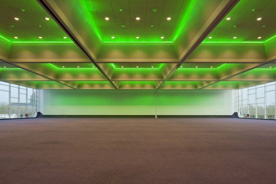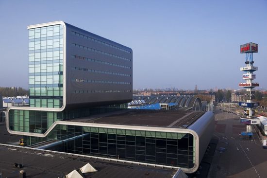 RAI展覽及會(huì)議中心新建了一座大廈, 設(shè)有 Expo Foyer 和‘Ballroom‘’空間。Ballroom是一個(gè)大型的無(wú)柱空間,可采用滑動(dòng)分區(qū)劃分。會(huì)議中心上部有七層,大廈處于一個(gè)更有利的地位,以吸引大型的多日國(guó)際活動(dòng)。