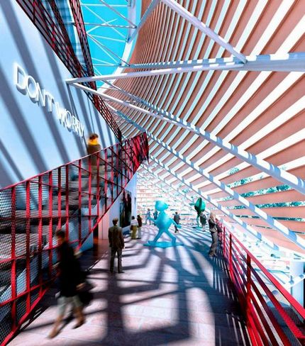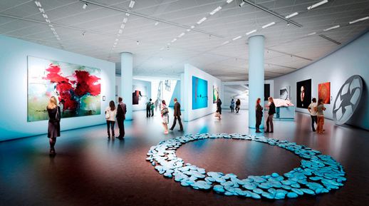 建筑將包括5000平方米帶有空調(diào)的畫廊空間和7000平方米的外部的空間,屋頂和每層樓都帶有花園陽臺。為了確保能夠舉辦多種展覽,每樓層的最低高度為5.5米。大堂配有一個(gè)8米高的中庭,能夠懸掛藝術(shù)作品,同時(shí)還為上層畫廊提供通風(fēng)空間。