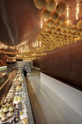 面包是知名品牌奧莫尼亞推出的又一新項目,奧莫尼亞是著名的希臘糕點品牌。透視廚房是它賣糕點和面包的處所。1000平方英尺室內空間是一種液體表面,液體覆蓋了不同高度的天花板和側墻。表面被泡狀物和6英寸的管狀白熾燈系統(tǒng)包圍。