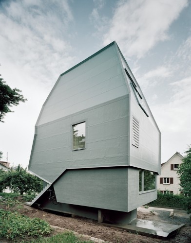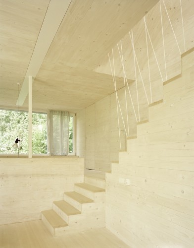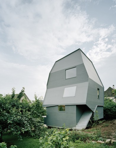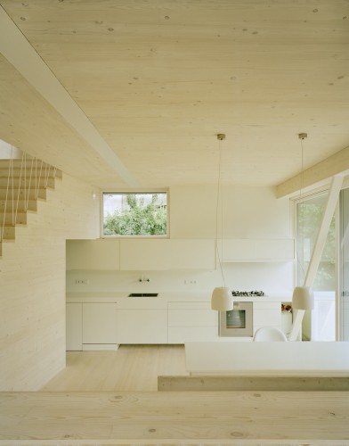 這個(gè)住宅位于德國,在一個(gè)朝南的斜坡上,有向著城市的景色。設(shè)計(jì)探討的是什么是好的起居空間,應(yīng)該用什么來定義它,什么是人們真正需要的。這些問題引導(dǎo)設(shè)計(jì)師去布置這個(gè)住宅,從而實(shí)現(xiàn)高效的空間安排,并照顧功能性和靈活性。設(shè)計(jì)試圖通過少量的材料運(yùn)用實(shí)現(xiàn)絕佳的空間質(zhì)量??臻g區(qū)域的重疊是為了給人們一種開闊的空間感,多層次的氛圍和無限的可能,盡管起居空間很小。