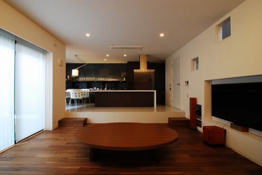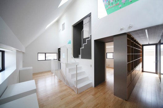 客戶需要首層空間適合朋友聚會和家庭聚會,另外客戶需要另一個起居空間,供小孩子玩耍。首層的餐廳廚房起居空間都以日式房間風格設計。通過創(chuàng)造出不同的條件,如可移動桌子,墻壁上的壁龕,通向一樓的滑梯,二樓起居空間搖身一變成為孩子們的圖書館,畫廊和游戲空間。