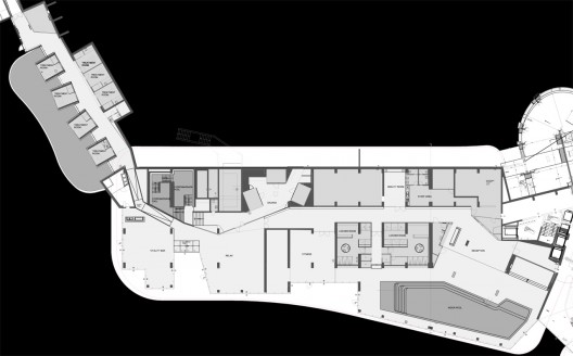 這個水療空間位于克羅地亞的羅維尼,是Lone酒店的一部分,這個酒店是克羅地亞第一家設(shè)計類酒店。水療行業(yè)的發(fā)展已席卷整個克羅地亞,這也為這個項目的生成提供了條件和基礎(chǔ)。酒店呈現(xiàn)出的極簡主義美感使設(shè)計師創(chuàng)造了一個當(dāng)代的自然的水療環(huán)境,這里的空間設(shè)計突出極端的娛樂和舒適感,同時呈現(xiàn)出一種藝術(shù)的氣息。整個水療區(qū)被認(rèn)為是一個空間連續(xù)體,它連接不同的功能,包括室內(nèi)泳池,健身房,桑拿中心,水按摩泳池和治療室等。設(shè)計中還包含一個走廊,人們可以在這里休息,或是在長長的彩色墻壁旁享受顏色療法,或只是經(jīng)過時享受室外的景色。