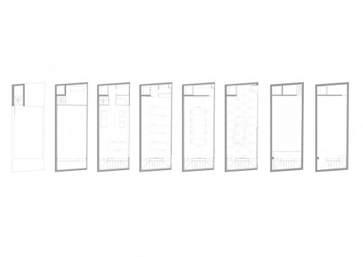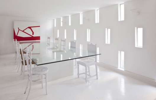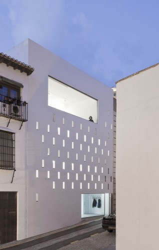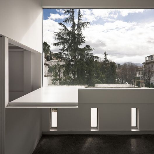 這是建造在狹小場(chǎng)地內(nèi)的一個(gè)住宅,為了能在這一有限空間內(nèi)創(chuàng)造工作空間和起居空間,設(shè)計(jì)師采用了很多直接的方式,如對(duì)自然光的控制,還有室內(nèi)不同的空間高度,還有盡量減少房間內(nèi)部的分隔,最后樓梯和服務(wù)區(qū)被安排在了最盡頭,中心的空間則被空了出來(lái)。房屋的空間條件需要設(shè)計(jì)師在緊湊的環(huán)境內(nèi)解決技術(shù)和功能的所有問(wèn)題:最后生成一個(gè)帶有狹窄規(guī)則開(kāi)口的墻壁,頂部帶有唯一開(kāi)口,和傳統(tǒng)的格拉納達(dá)住宅相同,它臨街的一面封閉,向著天空和花園的面打開(kāi)。
