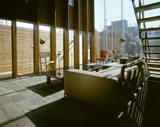 這個(gè)住宅建在日本東京,是為一對(duì)電影制片人夫婦建造的,建筑包含一個(gè)L形的布局形式,由加固混凝土和一系列的盒子形狀組成。設(shè)計(jì)師將臥室,電影檔案室和走廊放入堅(jiān)實(shí)的混凝土部分以求安全,起居室則是位于木質(zhì)盒子部分,以獲取開(kāi)闊性。設(shè)計(jì)的主題是從建筑中抽出一種整體感和材料感,這是追求白色平墻的現(xiàn)代建筑所忽視的兩個(gè)元素。設(shè)計(jì)師故意將木質(zhì)的紋理留在了混凝土的表面,同時(shí)融合質(zhì)感的石頭和鐵材。設(shè)計(jì)師認(rèn)為白色平整的現(xiàn)代建筑風(fēng)格會(huì)喚醒人們大腦的智力運(yùn)動(dòng),但是作為生活所用的住宅不應(yīng)該再使住戶(hù)有任何腦力的負(fù)擔(dān),而是應(yīng)該盡量使人放松,因此這個(gè)住宅一反白色水平的設(shè)計(jì)模式,采用一種更加生活化和放松的空間模式。