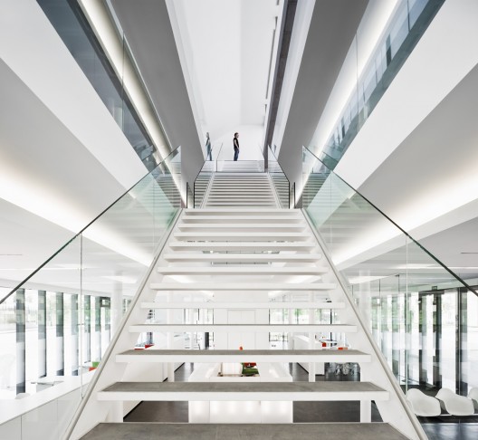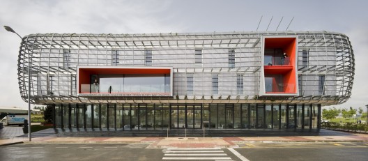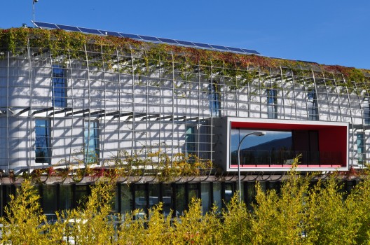 新建的諾艾恩市政大廳完全利用被動(dòng)和主動(dòng)節(jié)能系統(tǒng),這兩種系統(tǒng)從一開始就融入設(shè)計(jì)過程之中,最后清晰地反映在建筑的身上。項(xiàng)目能夠節(jié)能百分之六十,照明一般是辦公室內(nèi)耗能最大的部分,為了減少這一部分耗能,建筑盡量獲取最大范圍內(nèi)的自然光。這是一個(gè)包含很多層次的建筑,建筑中心是一塊空空的空間,其上覆蓋能夠引入陽光的天窗。沿著這個(gè)空洞主要的樓梯連接不同的樓層。環(huán)繞空洞空間的是一個(gè)走廊,它為人們提供進(jìn)入辦公室和會(huì)議室的通道。空間的分隔沒有觸及天花板,這樣自然光能夠從公共區(qū)進(jìn)入私人區(qū)。建筑表皮包含一個(gè)半透明的雙層立面,里層為玻璃,外層為聚碳酸酯,中間間隔25厘米;陽光因此可以到達(dá)整個(gè)建筑表皮。最外面的層是一個(gè)有機(jī)的鋼鐵網(wǎng)格,它離雙層立面還有兩三米遠(yuǎn)。水平的鋼鐵長條充當(dāng)遮陽板,減少夏日陽光的照曬。
