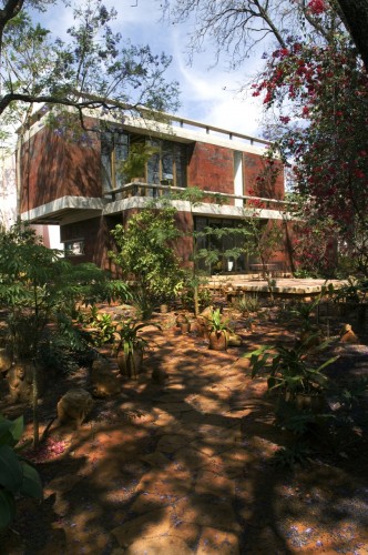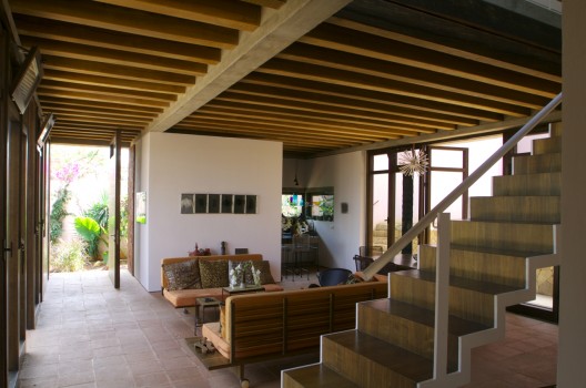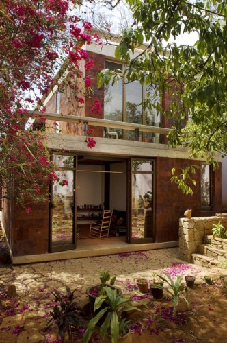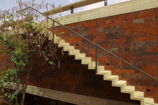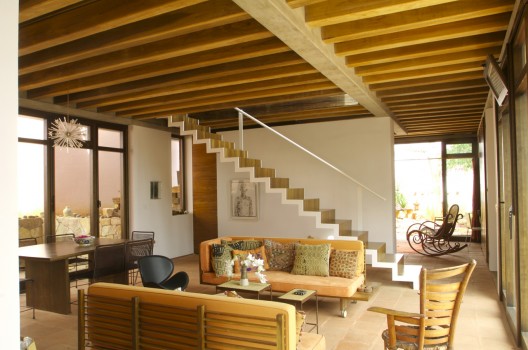 這個住宅和工作室是為一個塑料藝術(shù)家設(shè)計的,它由兩個同樣大小的體量組成,客戶想要在二樓的工作室處安插一個陽臺。這個想法啟發(fā)設(shè)計師創(chuàng)造出兩個相互堆積且錯落的建筑,低層的樓頂將成為高層的陽臺。一個內(nèi)置的樓梯成了兩者之間的連接和轉(zhuǎn)折。住宅位于一個不規(guī)則的場地內(nèi),與場地較短一側(cè)相連,從而創(chuàng)造出一個開闊的花園空間,為朝北的工作室和朝西的早餐室提供良好的照明和光線,住宅本身就像一個窗簾,保護陽臺免受陽光暴曬。
