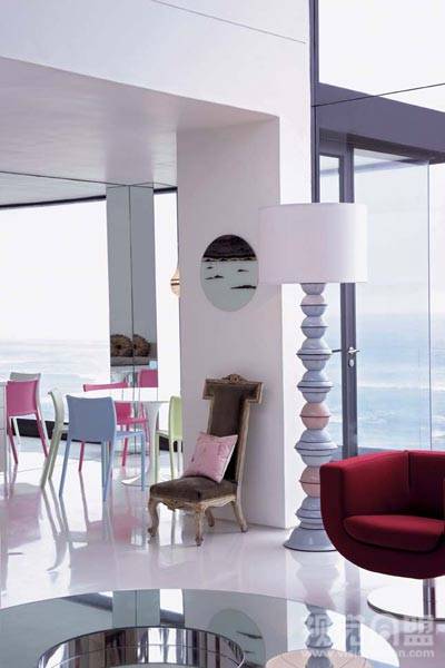 對(duì)于大自然,我們可以無(wú)限接近,卻已經(jīng)無(wú)法抵達(dá)。在這間海角玻璃屋里,不可或缺的鋼鐵架構(gòu),色彩斑斕的玻璃器皿,艷麗抽象的裝飾畫,書架上豎著一排排現(xiàn)代工業(yè)制造出來(lái)的書籍,一切都在無(wú)聲無(wú)息中表明,他們是由摩登都市里脫逃出來(lái)的現(xiàn)代人。而書桌上必不可少的筆記本電腦,更是在不經(jīng)意間提示著房屋主人不可逃離的社會(huì)角色。