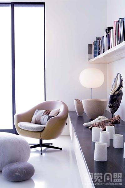 成功在于細(xì)節(jié)。Julian和Trevyn把他們“回歸自然”的設(shè)計(jì)理念貫徹到了每個(gè)角落,他們盡可能地使用自然材質(zhì)裝飾空間。除此之外,用純木制的墻板來(lái)間隔室內(nèi)空間,加上比比皆是的原色原木家具,無(wú)一不閃爍著“貼近自然、回歸自然”的純樸思想。至于那些書桌上散落的小小石子,最大限度地將設(shè)計(jì)思想擴(kuò)展到整棟房子。