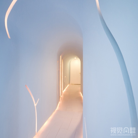 KUU設(shè)計(jì)的卓妍A會(huì)所采用了純白色的色調(diào),配合造型特別的燈槽,讓整個(gè)空間潔凈而高雅,十分輕型。