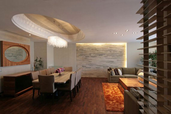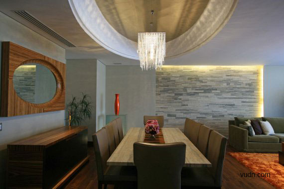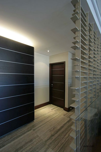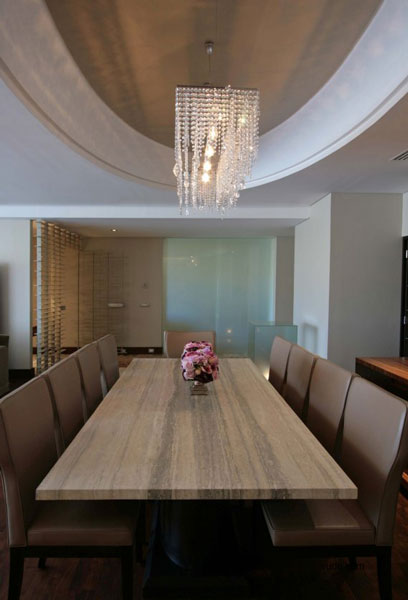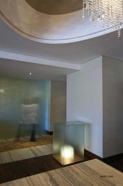 室內(nèi)多樣性是用來(lái)實(shí)現(xiàn)原始材料的組合:皮革,玻璃,木材,礦和金屬產(chǎn)品的形式和色彩產(chǎn)生了一種特別和諧的的氣氛。另一方面, Travertino大理石板和trapestry覆蓋的墻壁,強(qiáng)調(diào)特定領(lǐng)域之間層次的一個(gè)重要要素。