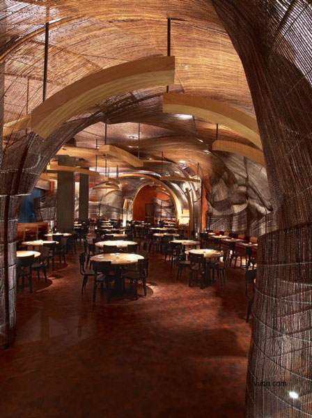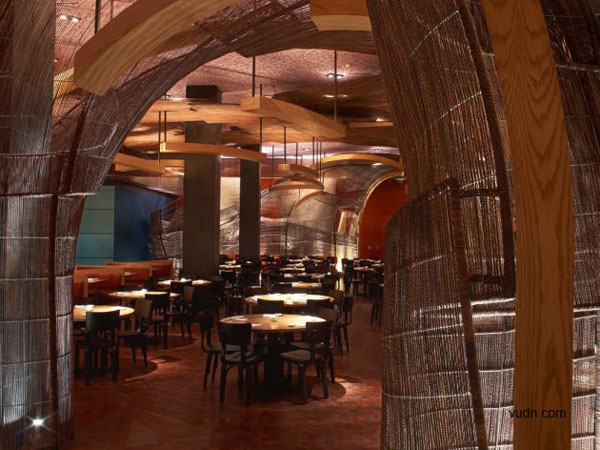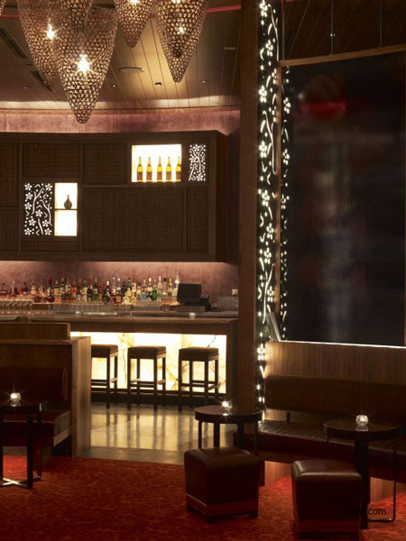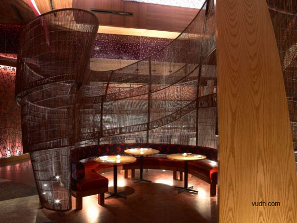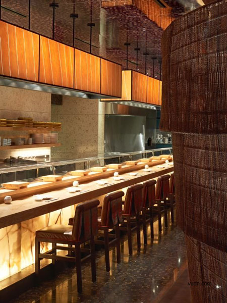 Nobu是中東第一家開(kāi)放式的餐廳。餐廳設(shè)在迪拜的亞特蘭蒂斯度假圣地朱美拉棕櫚島上,設(shè)計(jì)來(lái)自于Rockwell Group。朱美拉棕櫚島是著名的棕櫚樹(shù)形狀的人工島,位于波斯灣,在這里有世界一流的住宅,酒店,零售以及娛樂(lè)設(shè)施。