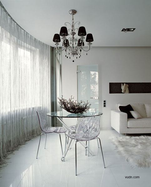 ERGES,一個設(shè)在拉脫維亞里加的建筑設(shè)計工作室,在最近完成了這個屬于年輕和現(xiàn)代女孩的公寓室內(nèi)設(shè)計項目。因為該公寓的空間有限,所以選擇了簡潔和明亮空間式設(shè)計。白色裝飾發(fā)揮主體作用,并且強調(diào)了淡紫色的風格。光滑地面和現(xiàn)代漆的家具加上經(jīng)典的豪華內(nèi)飾細節(jié),創(chuàng)造了一個抽象以及完善的“閨房”氣氛。
