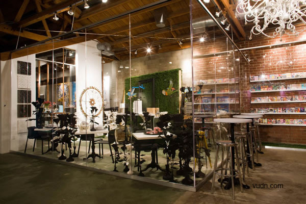 Royal/T俱樂部位于美國加利福尼亞州卡爾弗城的一個(gè)10000平方英尺的倉庫內(nèi),由wHY提供室內(nèi)設(shè)計(jì)。這是一個(gè)有意識的全新接觸,畫廊與咖啡館以及一個(gè)零售商店的相互聯(lián)系,顧客可以邊用餐邊欣賞這里的數(shù)百萬美元價(jià)值的藝術(shù)收藏品。